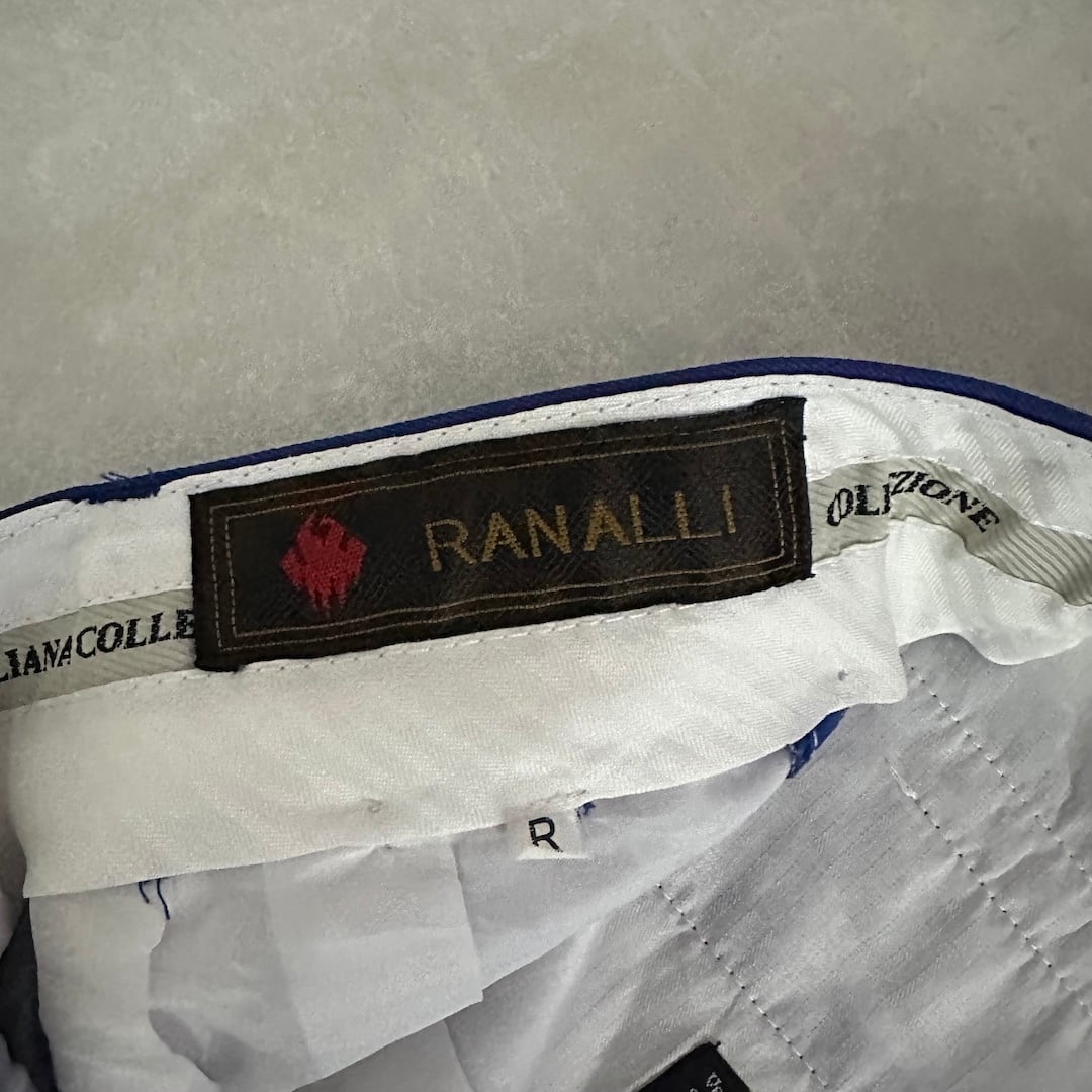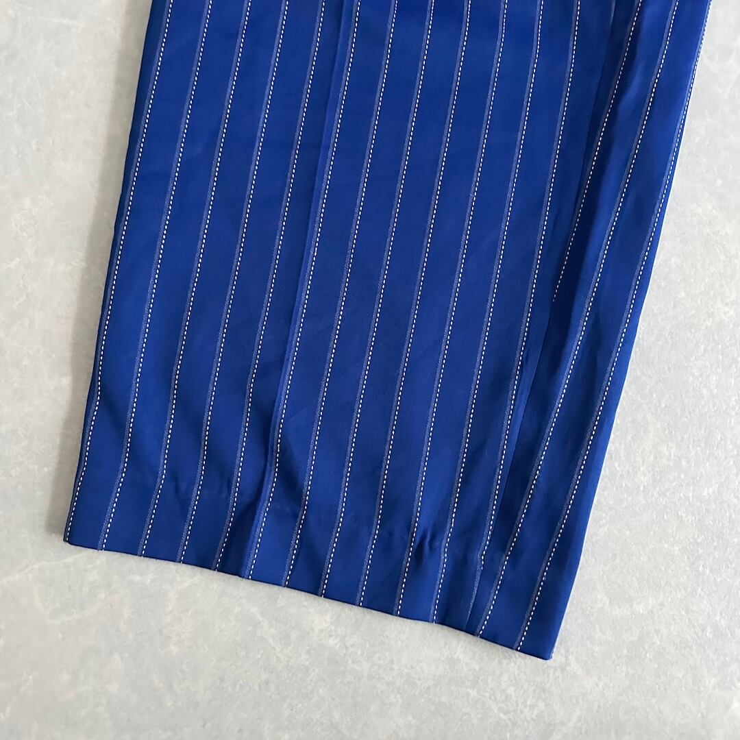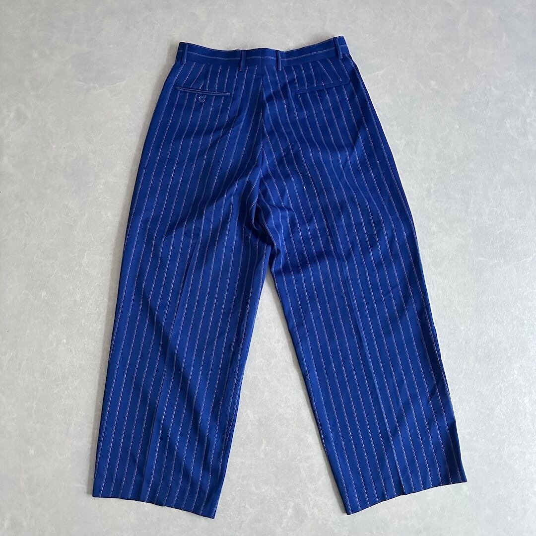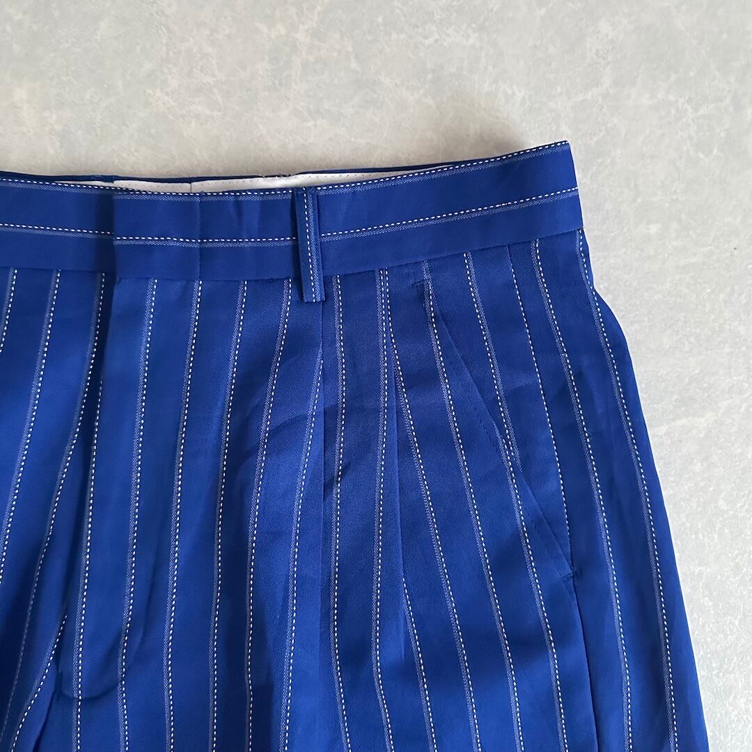 ヴィンテージ風 ピンストライプ ワイドパンツ ストライプ柄 32 古着 メンズ 古着男子 イタリア古着 ブルー 青 イージーパンツ