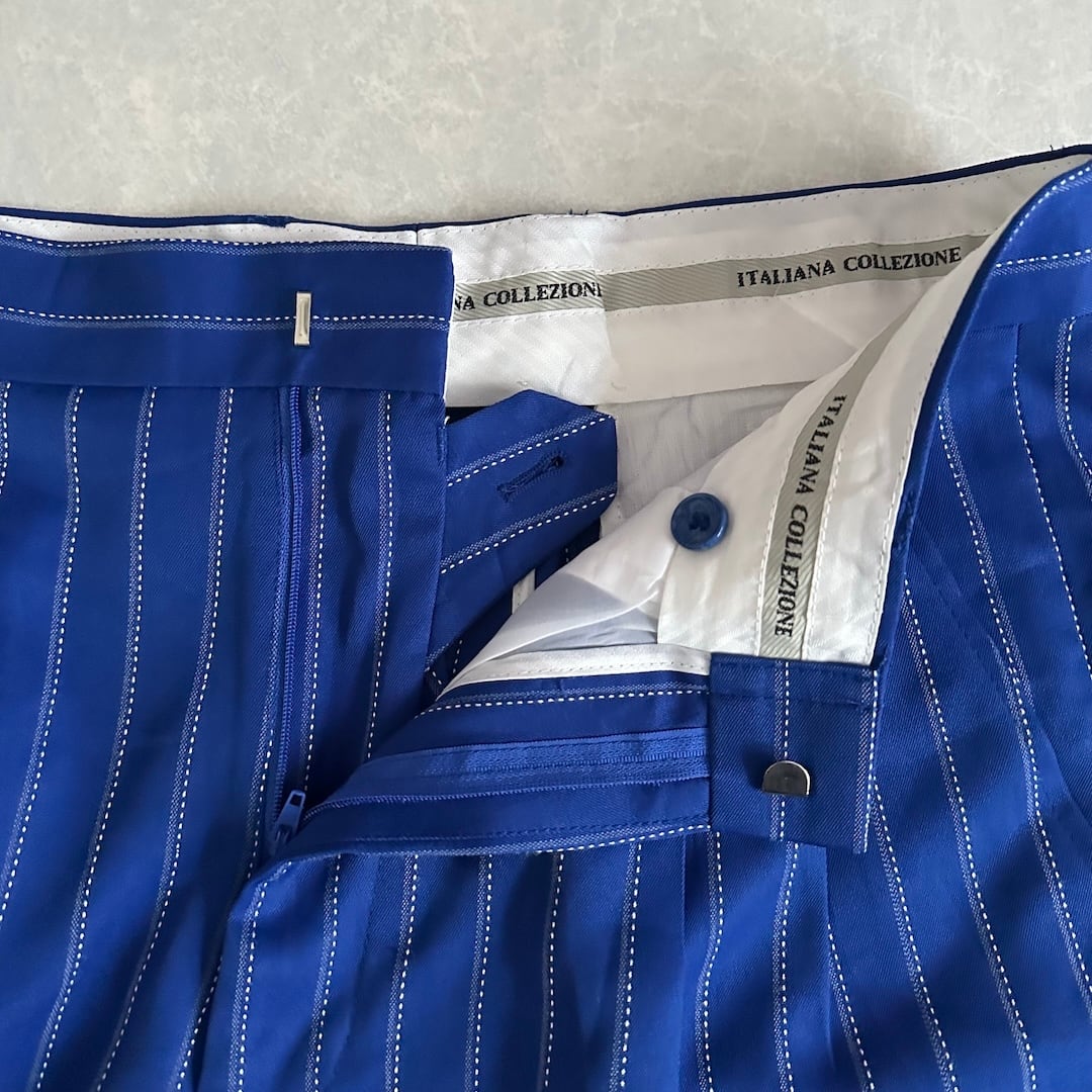 Vintage-Inspired Pinstripe Wide Pants / Stripe Pattern / Size 32 / Vintage / Men’s / Used Clothing / Italian Vintage / Blue / Easy Pants