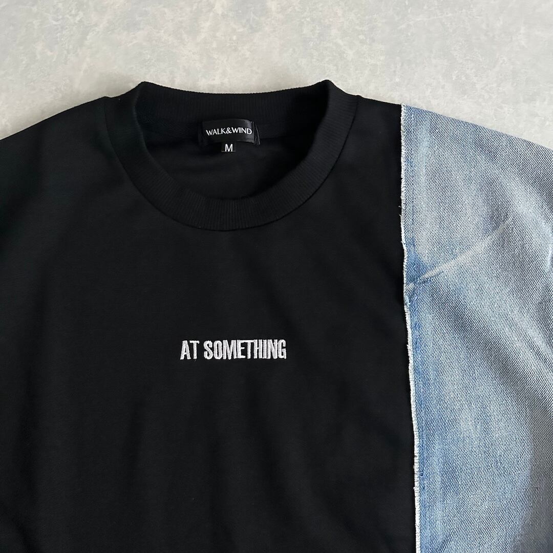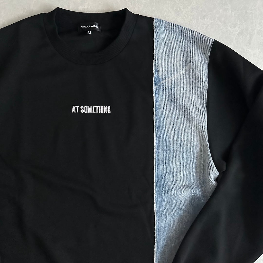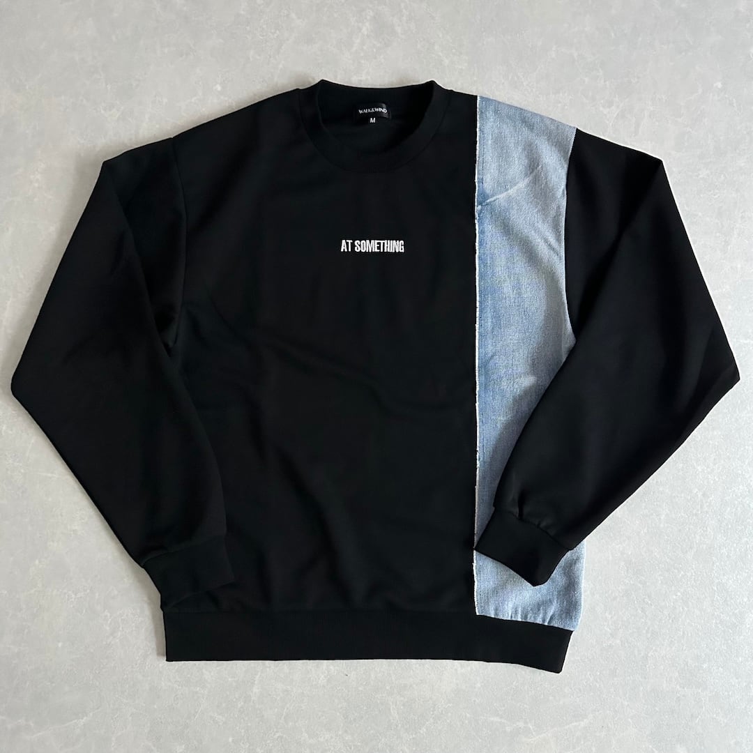 Denim Panel Crewneck Sweatshirt / Black / Size M / Vintage / Men’s / Used Clothing / American Casual Vintage / Black