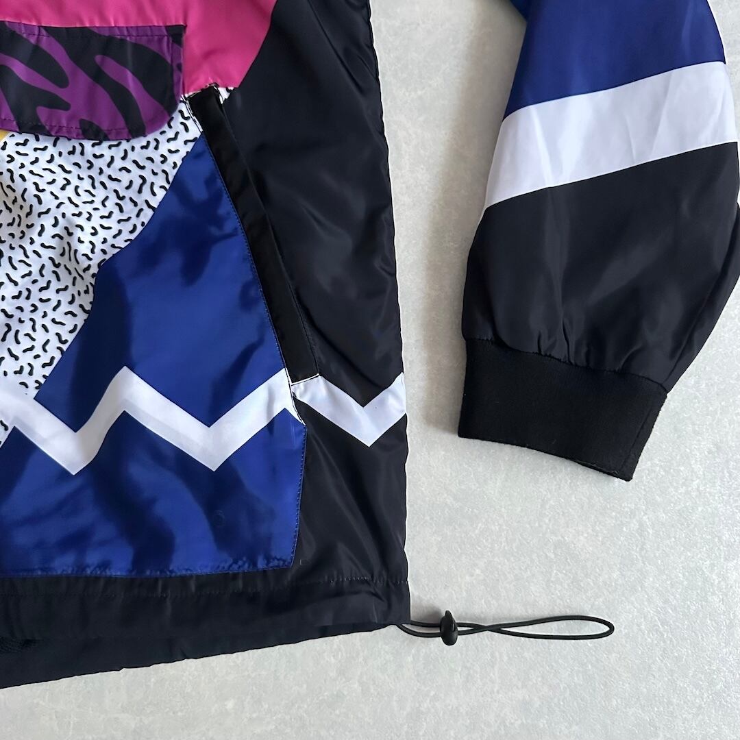 ポップ柄 マルチカラー ナイロン ブルゾンジップパーカー 総柄 XL 古着 メンズ 古着男子 ストリート古着 豹柄 リブ フーディー ヒップホップ