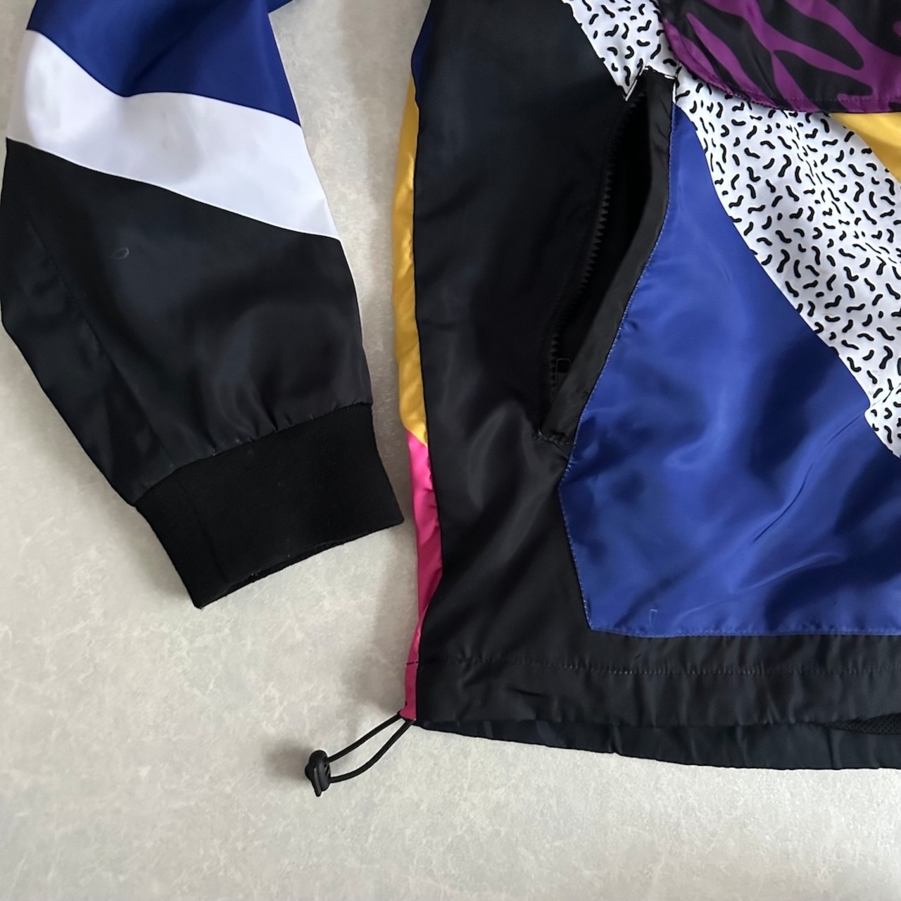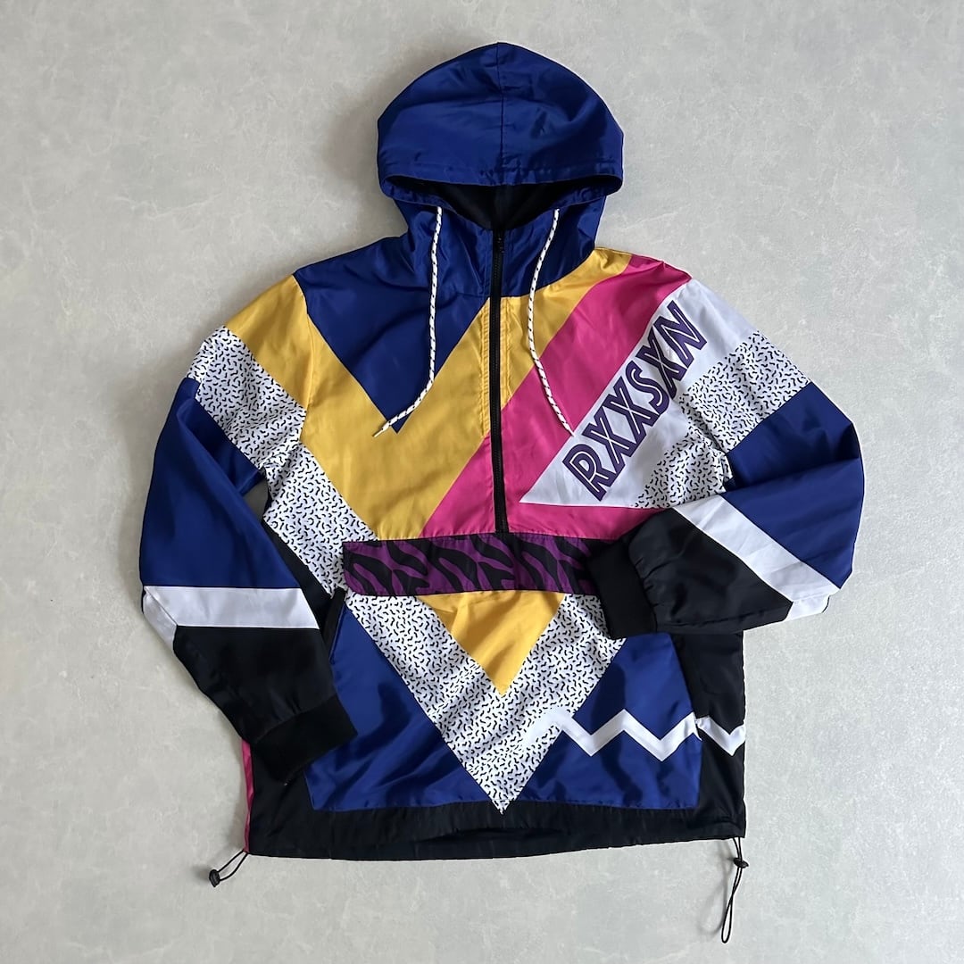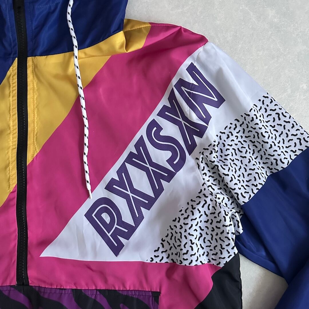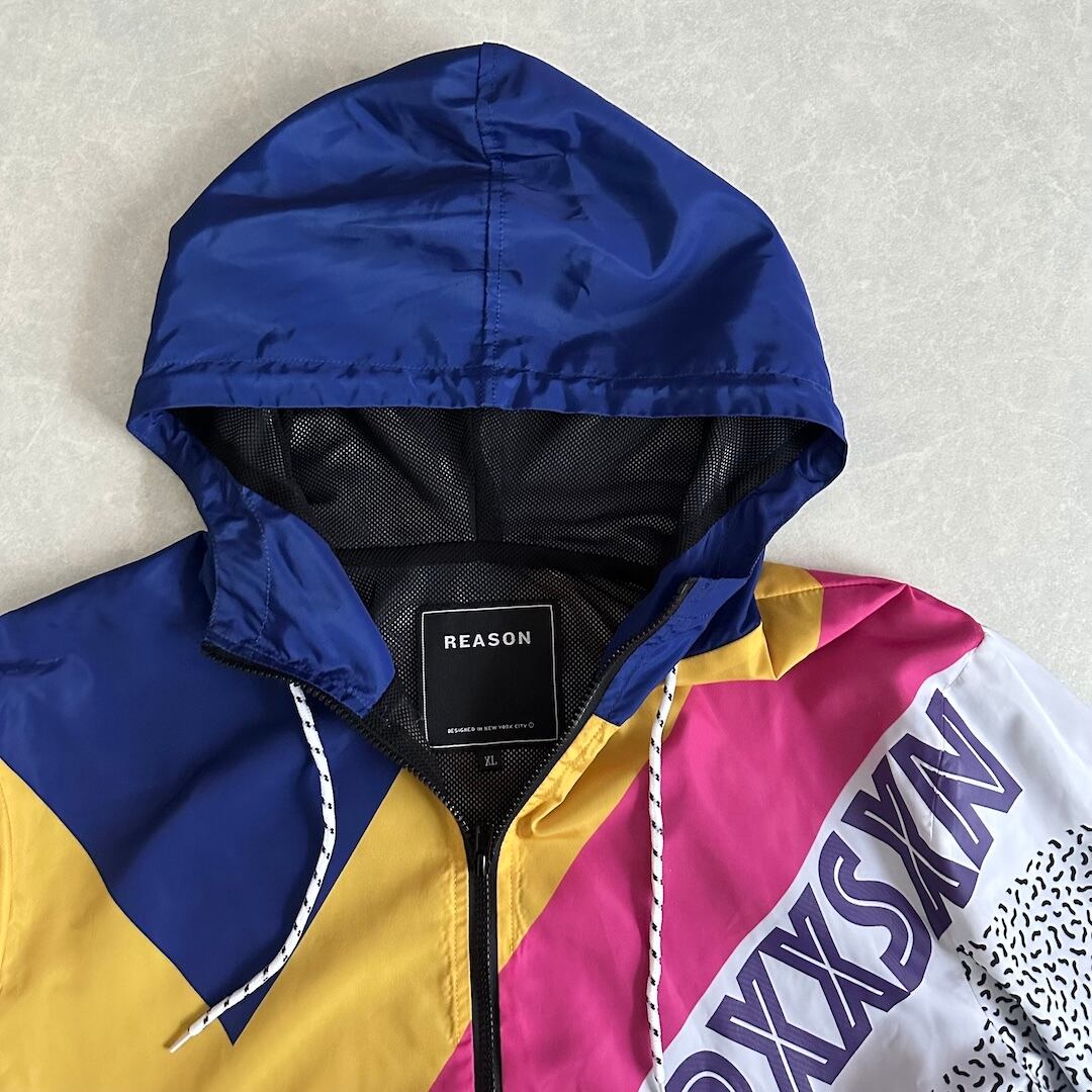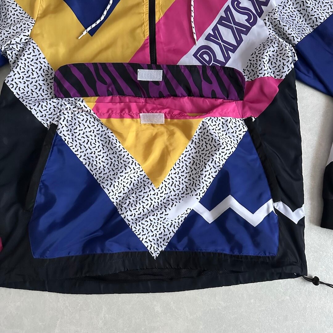 Pop Pattern Multicolor Nylon Blouson Zip Hoodie / All-Over Print / Size XL / Vintage / Men’s / Used Clothing / Street Vintage / Leopard Pattern / Ribbed / Hoodie / Hip-Hop Style