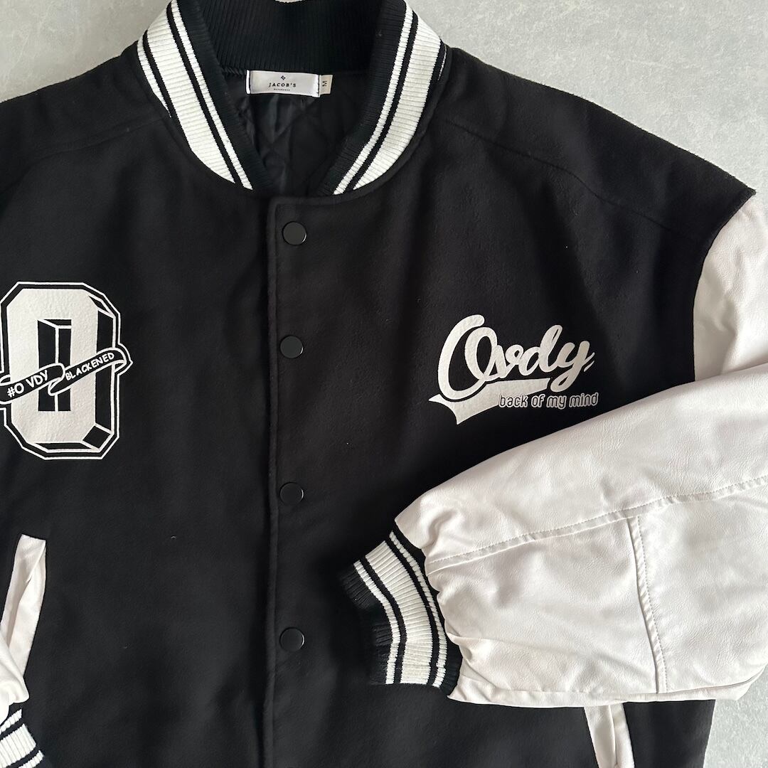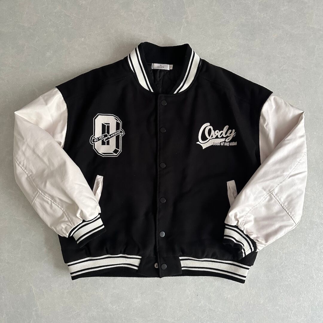 Pop Print American Casual Stadium Jacket / Black / Size M / Vintage / Men’s / Used Clothing / American Casual Vintage / Oversized / Relaxed Fit / Big Size