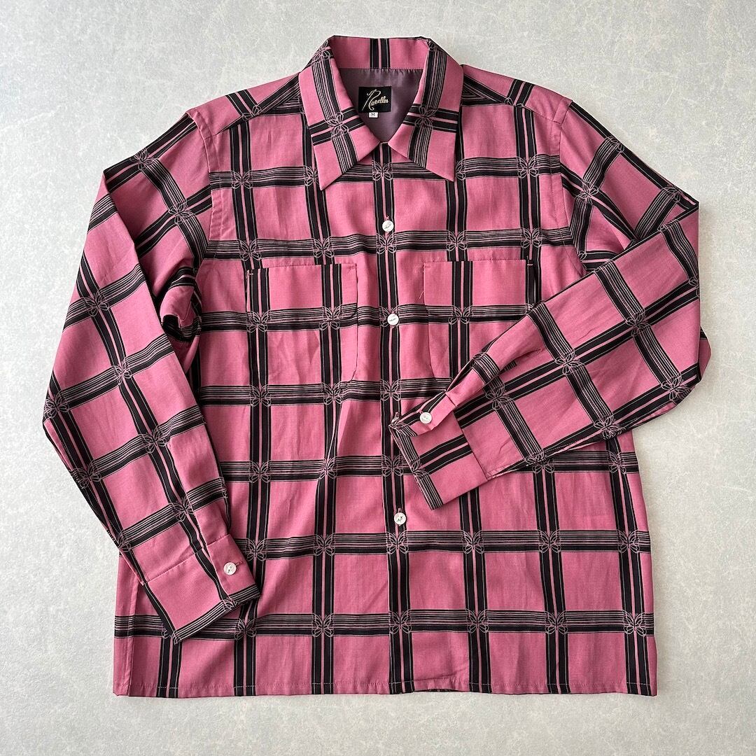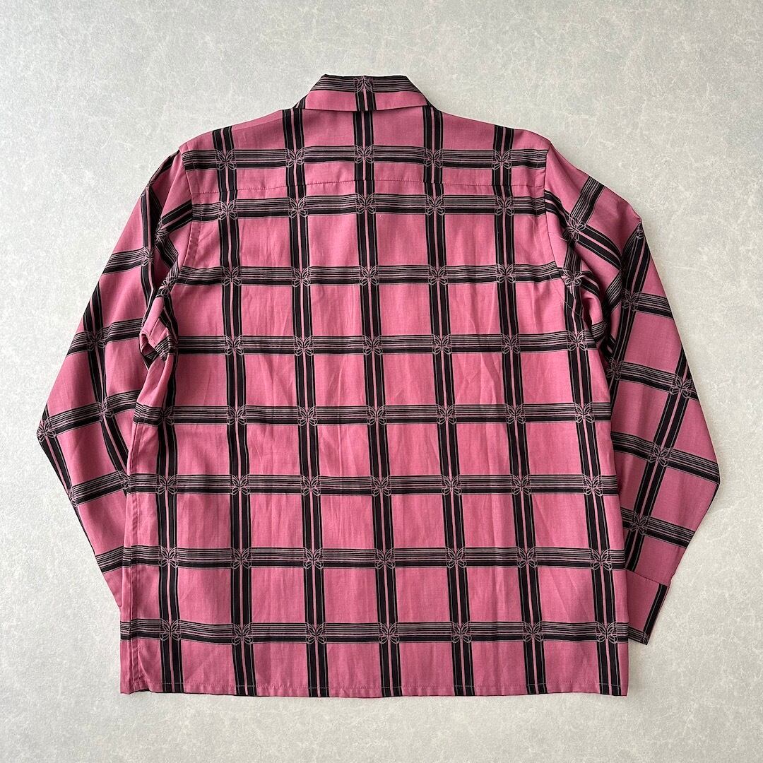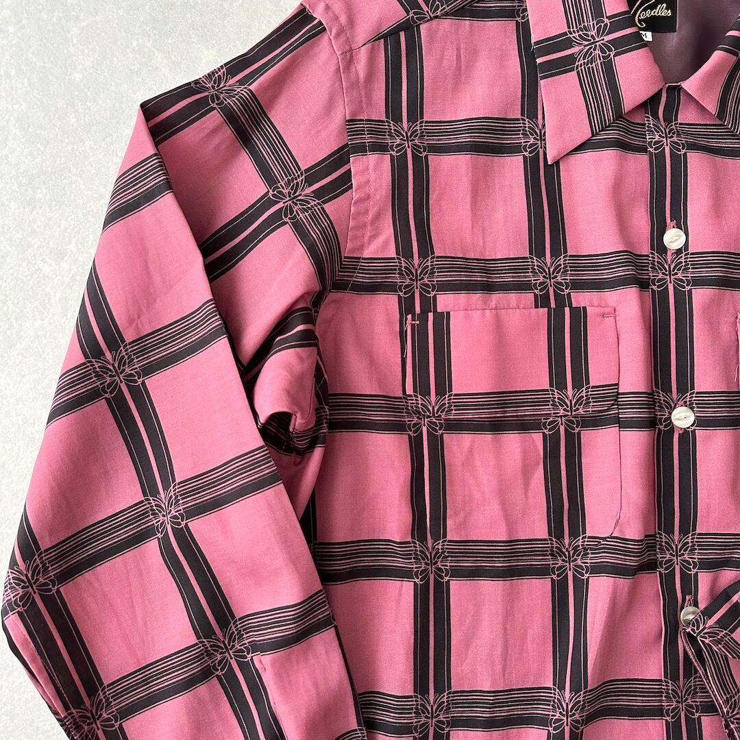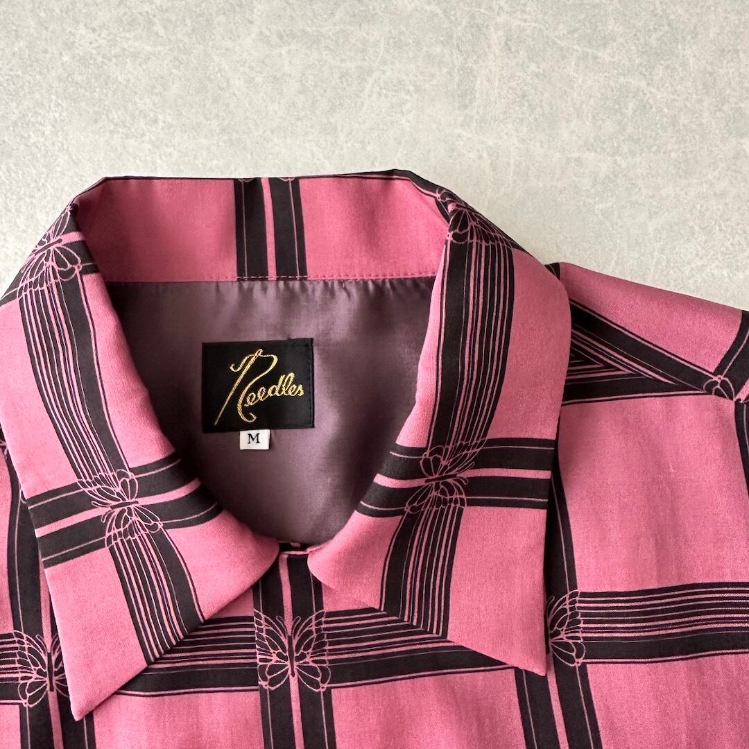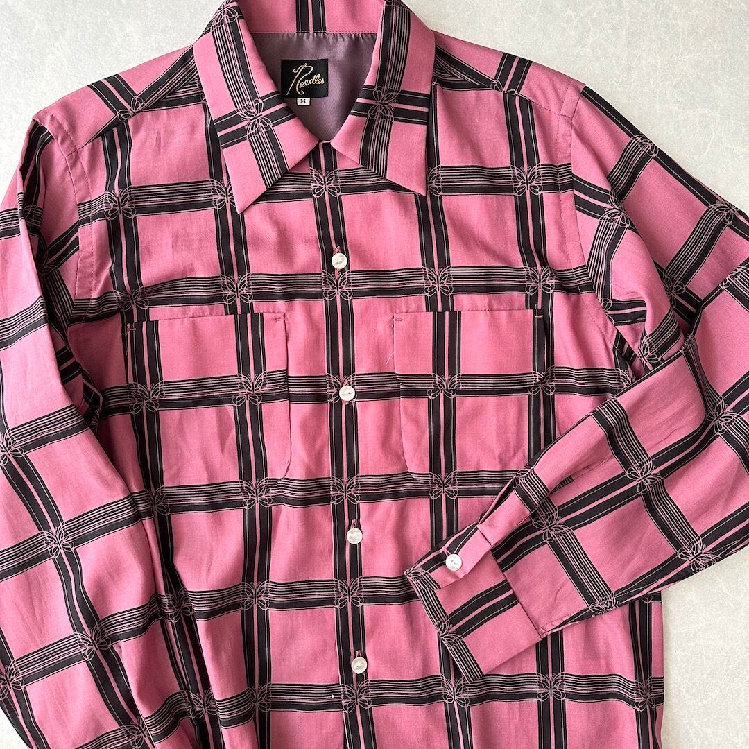 【NEEDLES】美品 チェック柄バタフライ長袖シャツ M 古着 メンズ 古着男子 ブランド古着 レーヨンシャツ 総柄シャツ ピンク 長袖シャツ レギュラーカラー