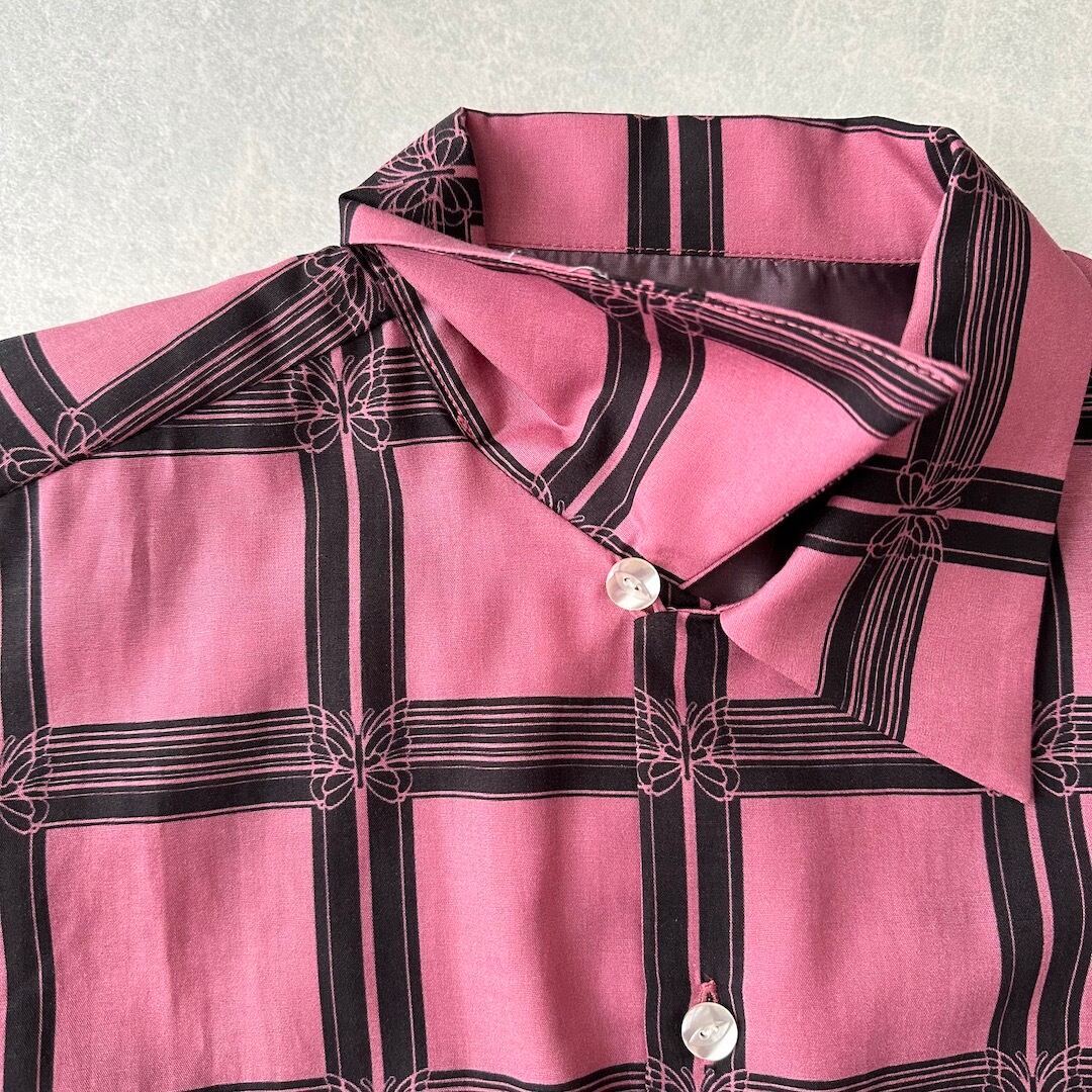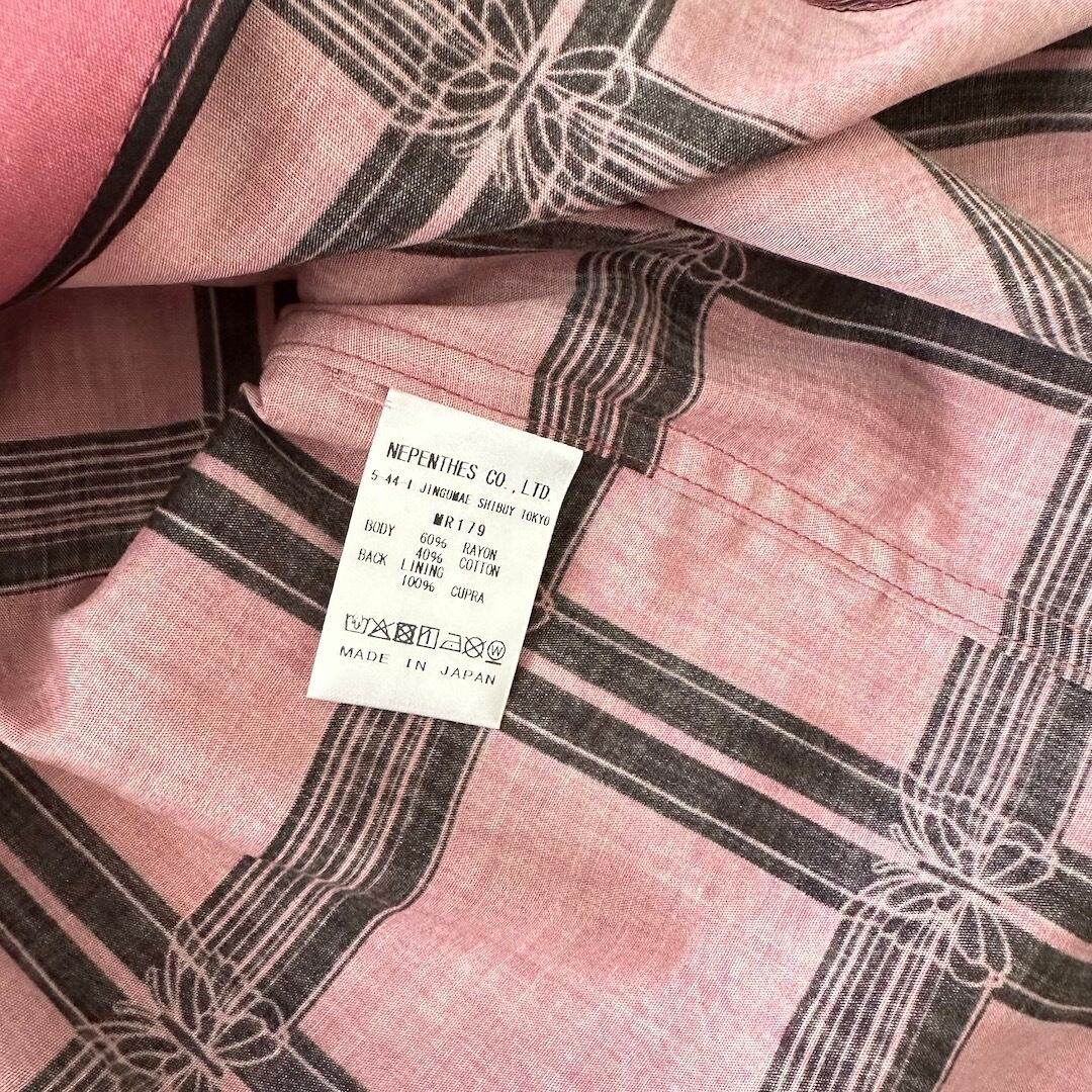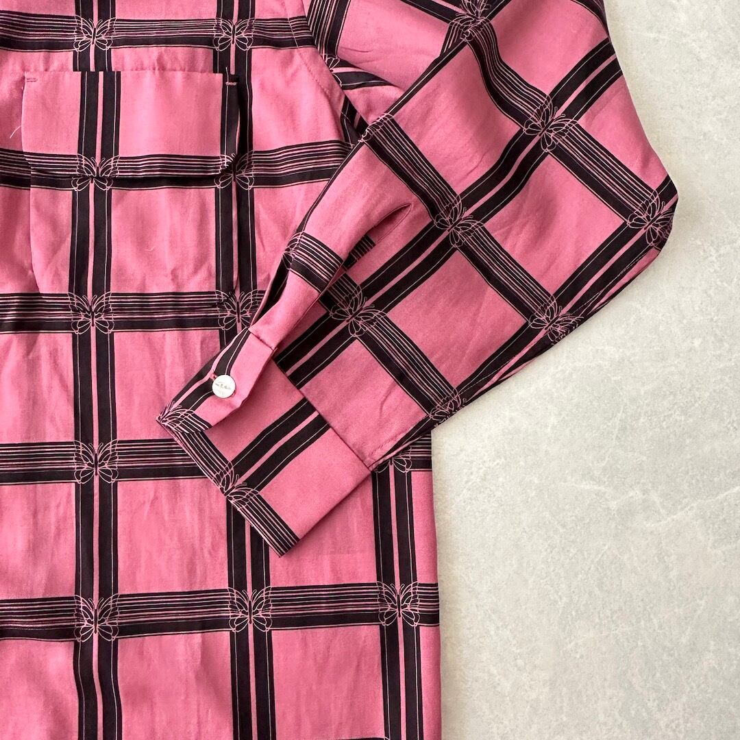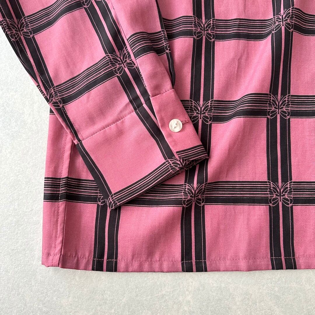 [NEEDLES] Excellent Condition / Check Pattern Butterfly Long-Sleeve Shirt / Size M / Vintage / Men’s / Designer Vintage / Rayon Shirt / All-over Pattern Shirt / Pink / Long Sleeve / Regular Collar / Japan / Japanese vintage clothing / Furugi