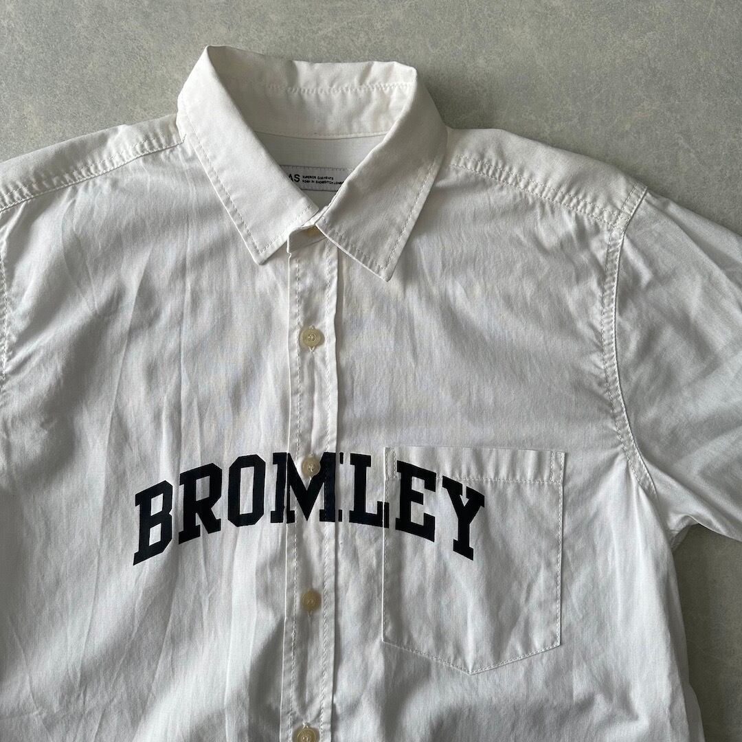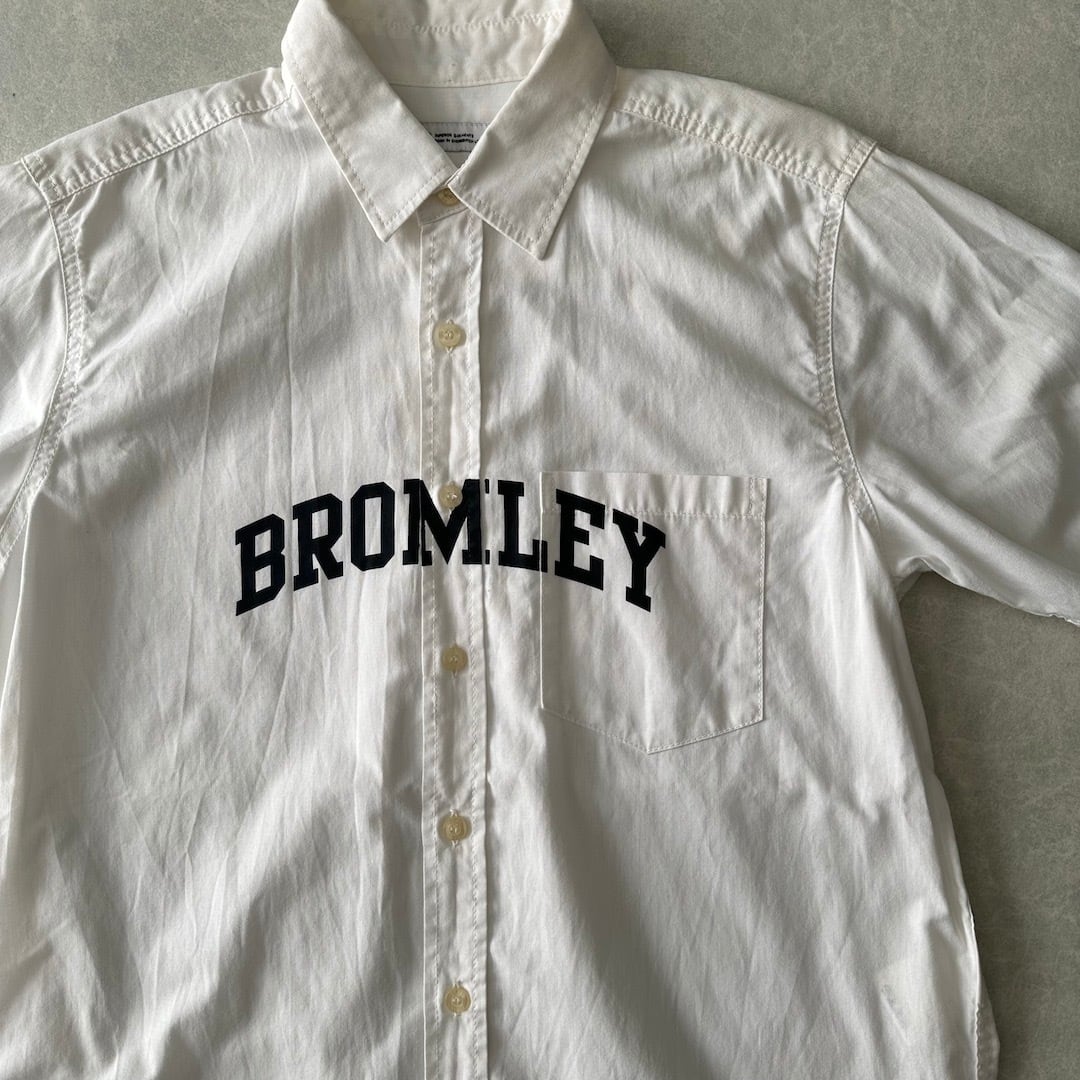 【SILAS】Printed Short-Sleeve Shirt / White / Size M / Vintage / Men’s / Streetwear / Brand Vintage / BROMLEY Graphic / Chest Pocket / White Shirt / Japan / Japanese vintage clothing / Furugi