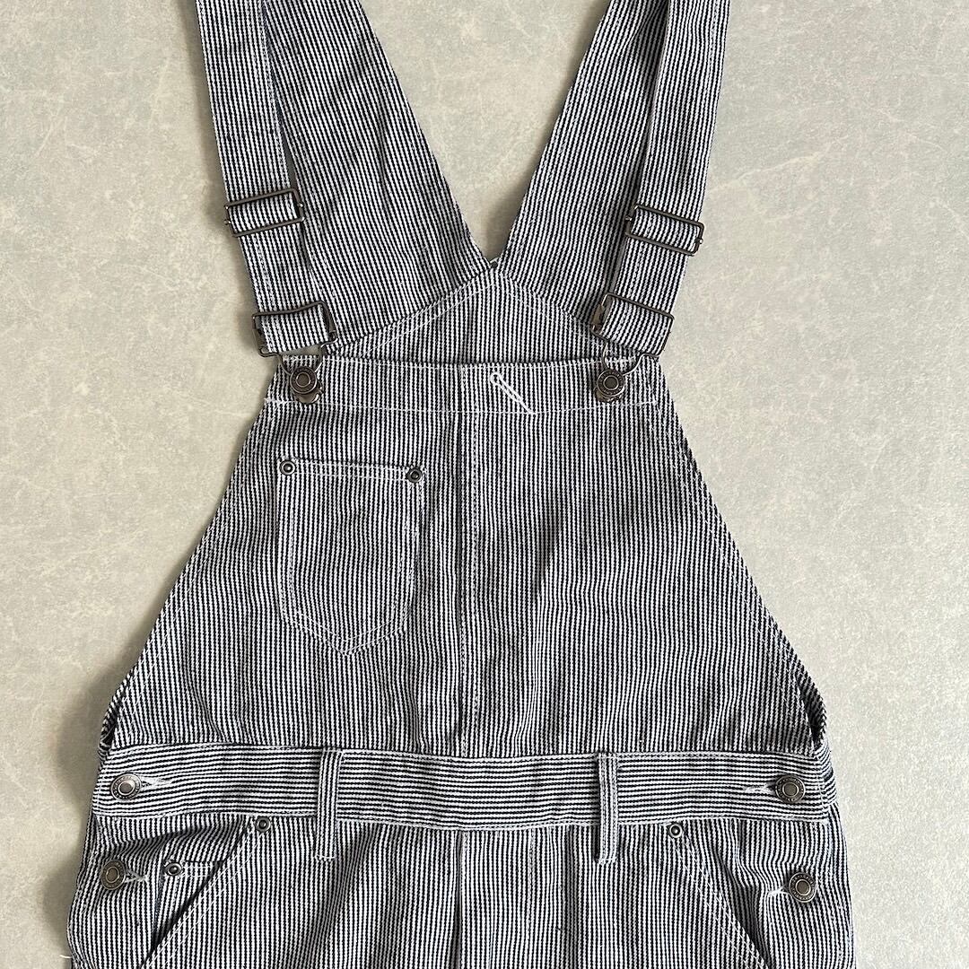 ヒッコリーストライプオーバーオール ストライプ柄 M 古着 メンズ