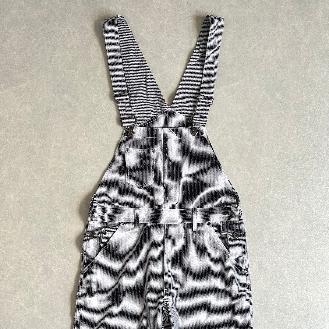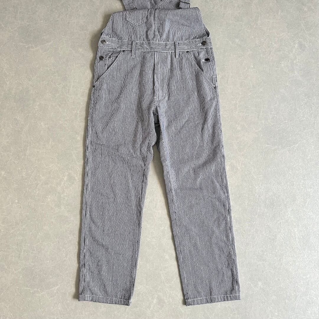 Hickory Stripe Overalls / Stripe Pattern / Size M / Vintage / Men’s / American Casual / Workwear / Work Pants / Denim / White & Blue / Japan / Japanese vintage clothing / Furugi