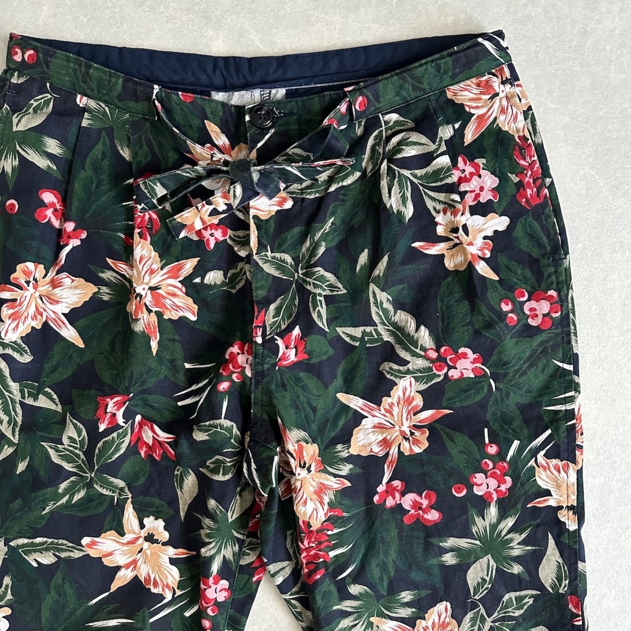 【BEAUTY&YOUTH UNITED ARROWS】リネン混花柄イージーパンツ 総柄 M 古着 メンズ