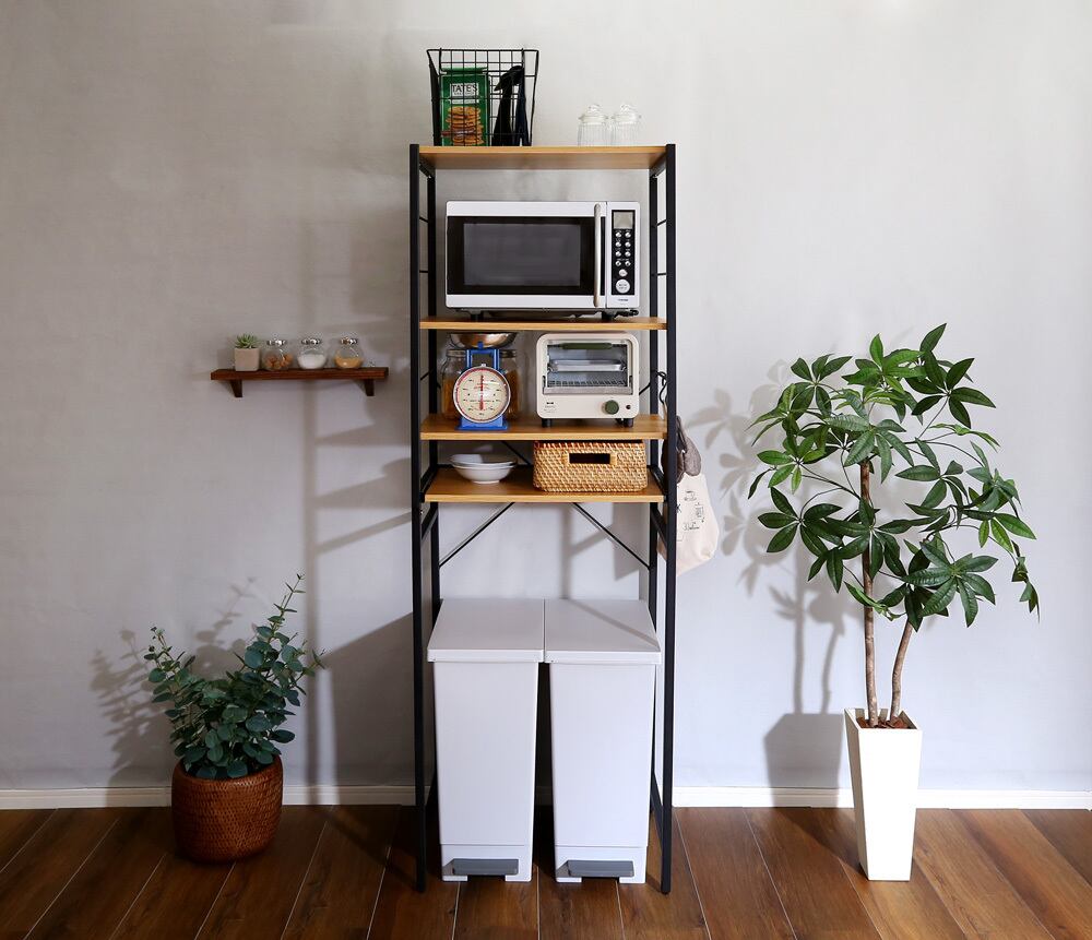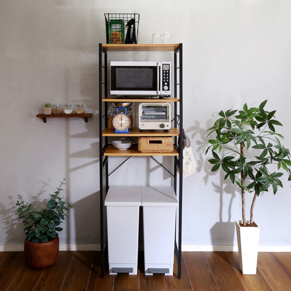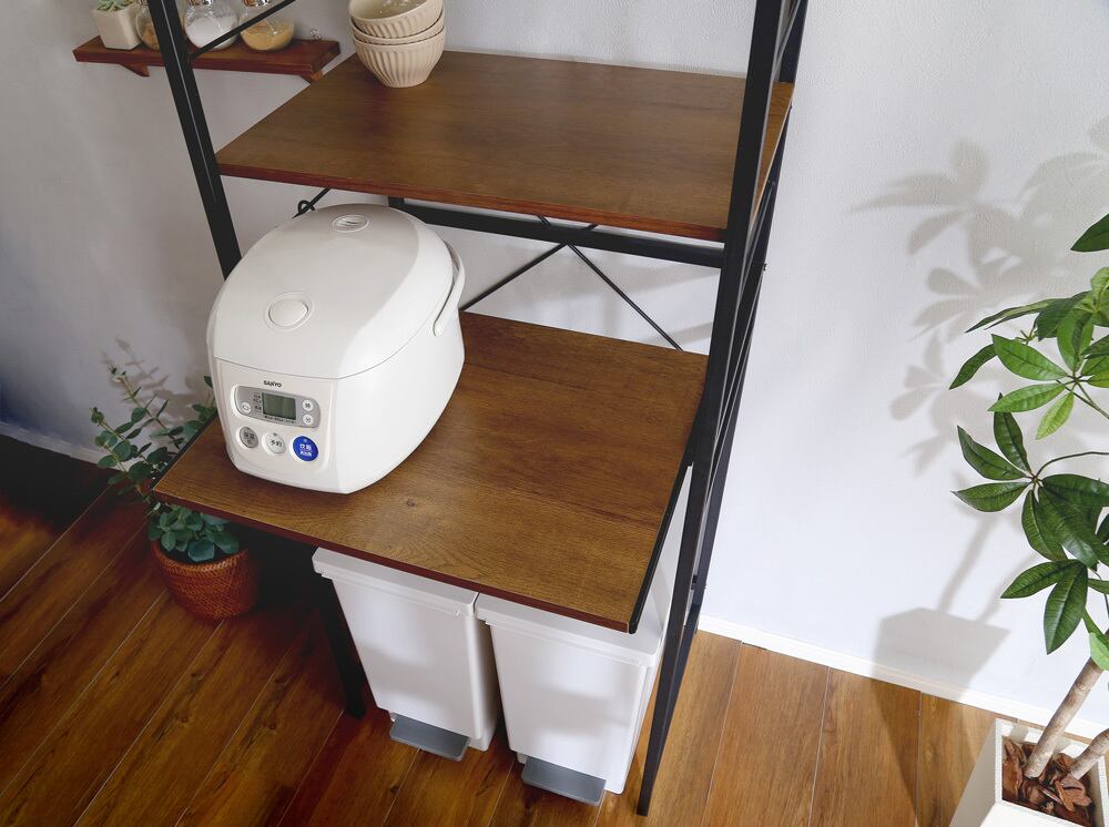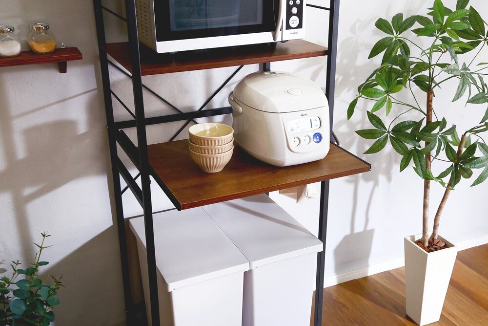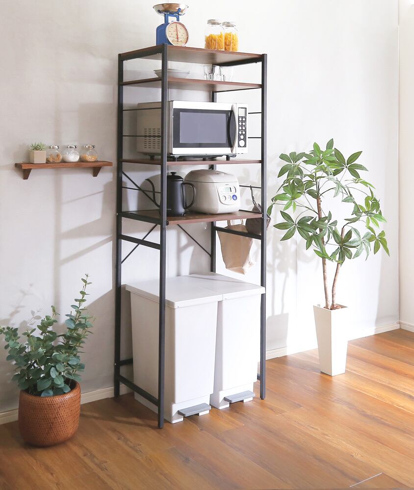 ゴミ箱上のデッドスペースを有効活用できるヴィンテージゴミ箱上レンジラック。