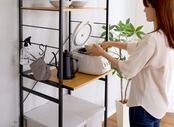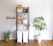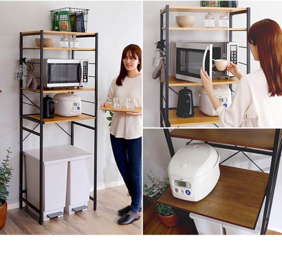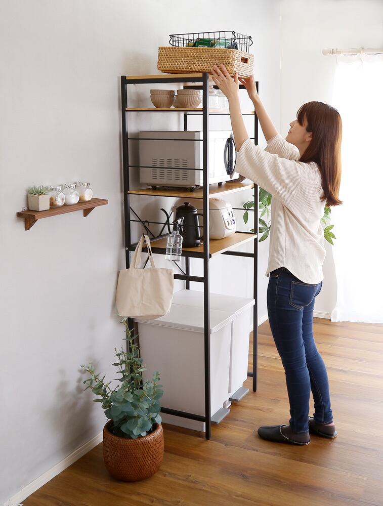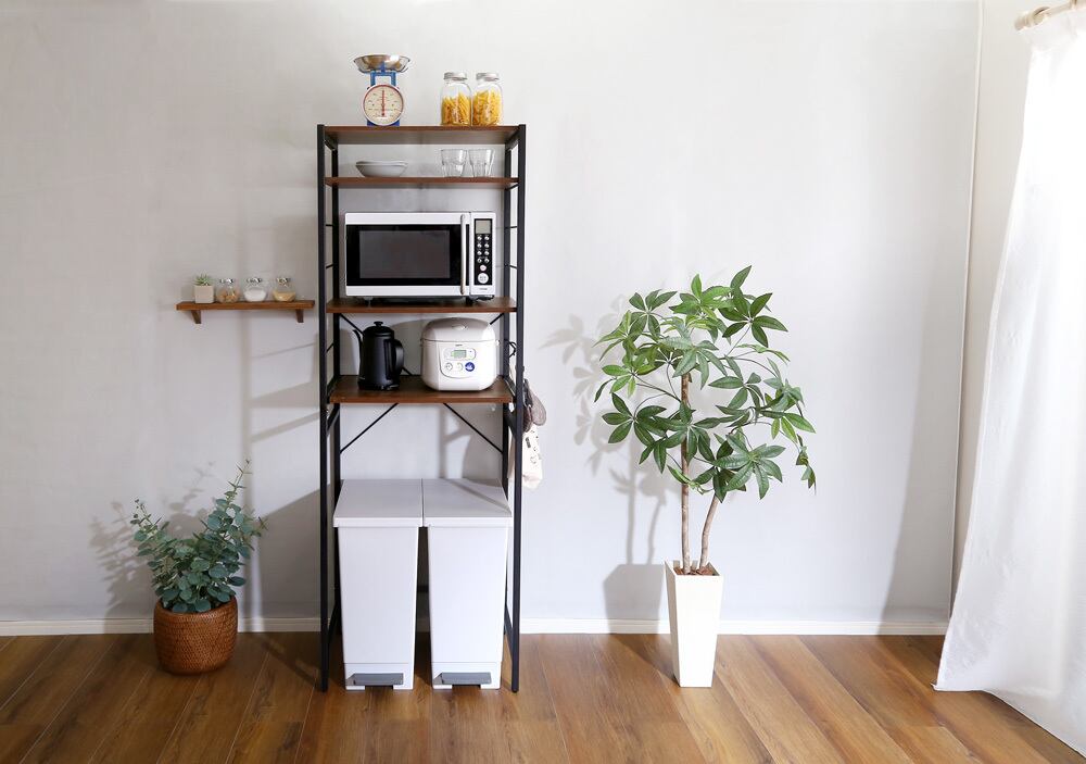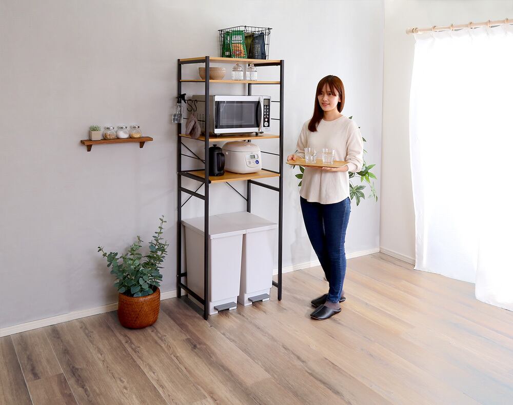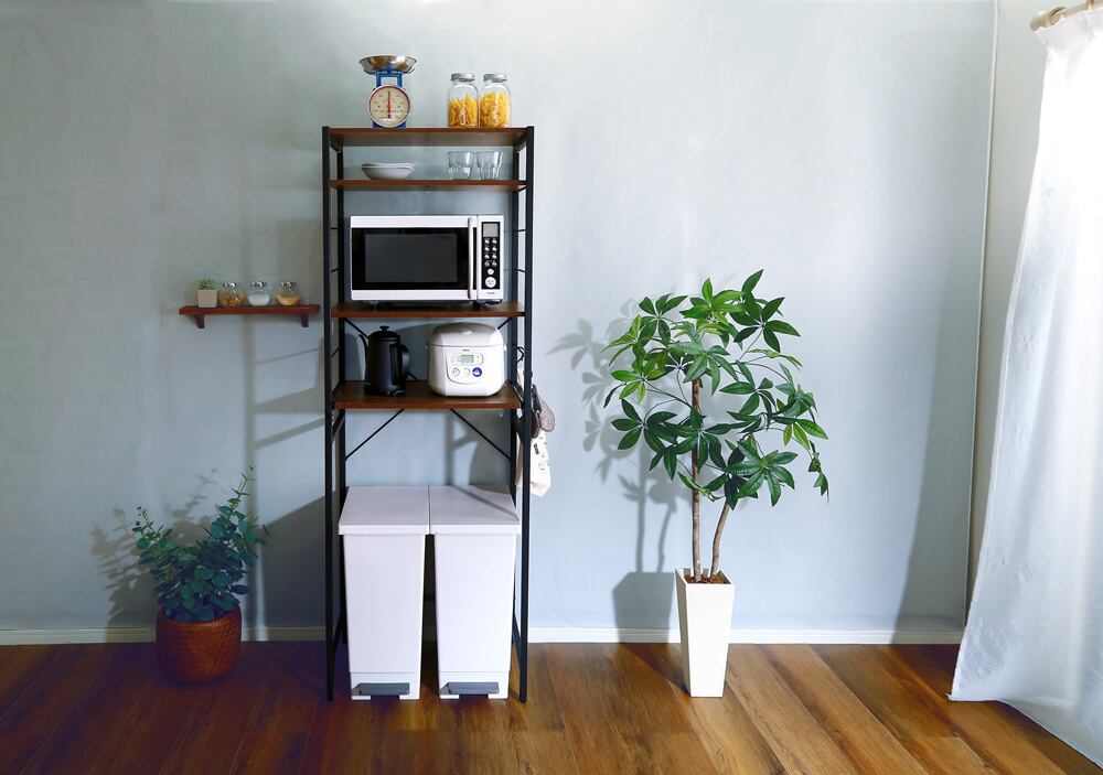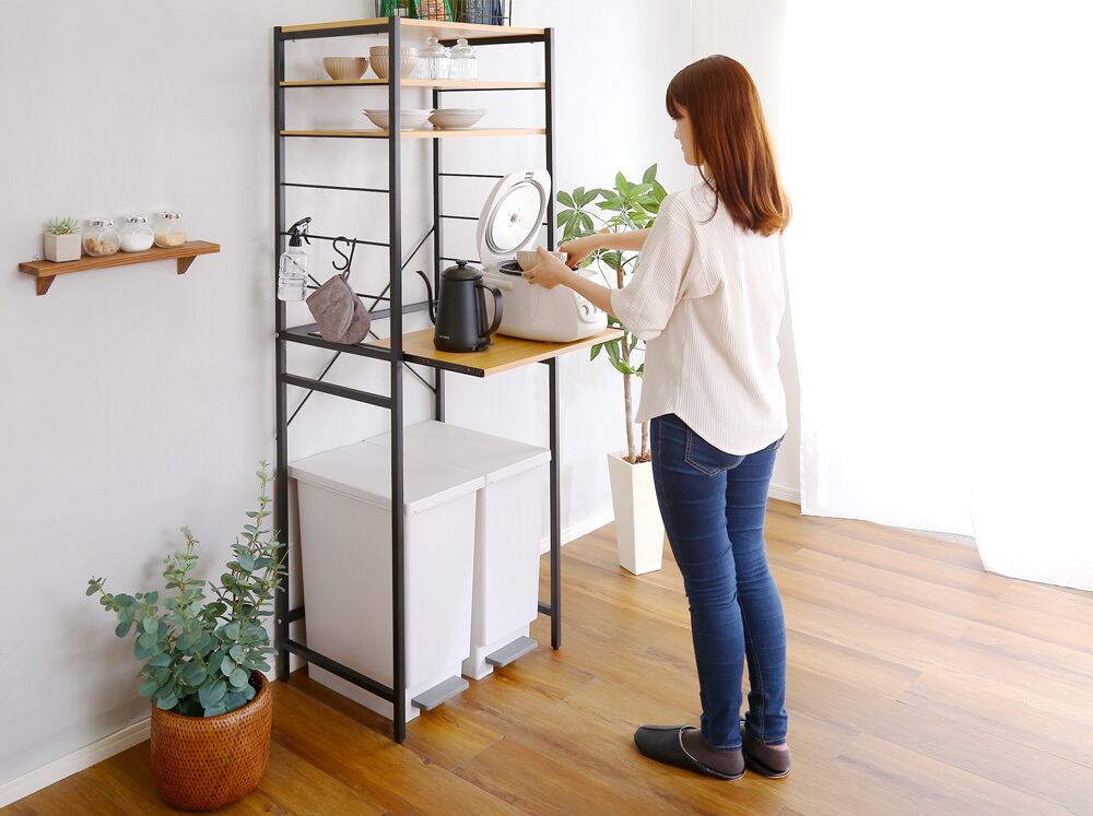 ゴミ箱上のデッドスペースを有効活用できるヴィンテージゴミ箱上レンジラック。