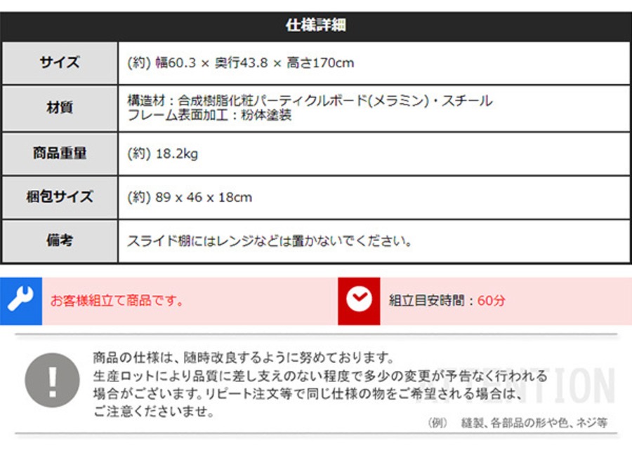 W60.3×D43.8×H170cm