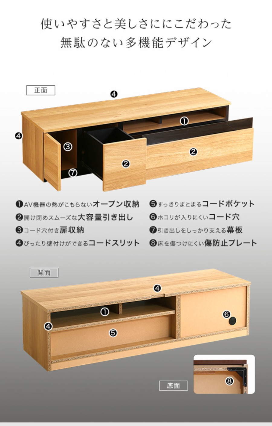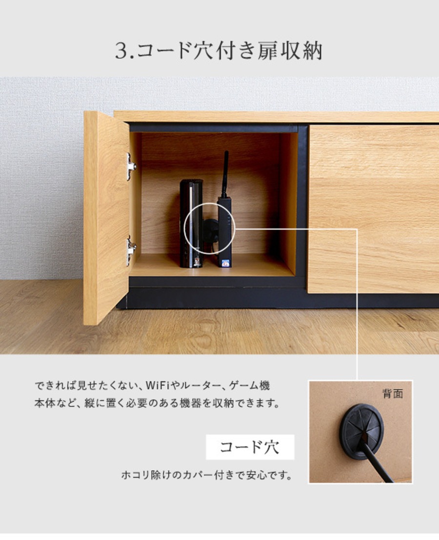 見た目と使いやすさを兼ね備えたテレビボードです。