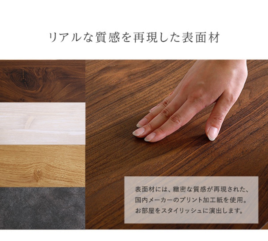 ナチュラル、グレー、ホワイトウォッシュ、ウォールナット