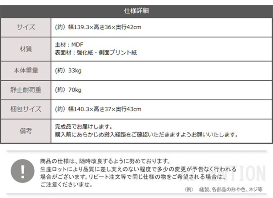 (約)幅139.3×高さ36×奥行42cm