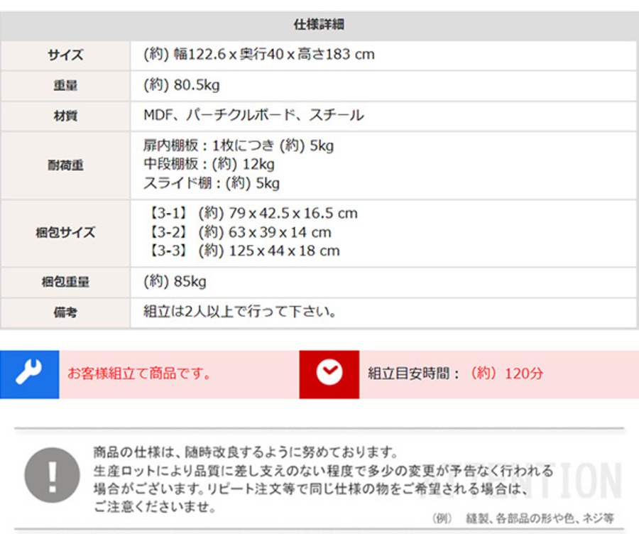 3人、4人家族におすすめの収納場所に困らない120cm幅の大容量ワイドタイプです。