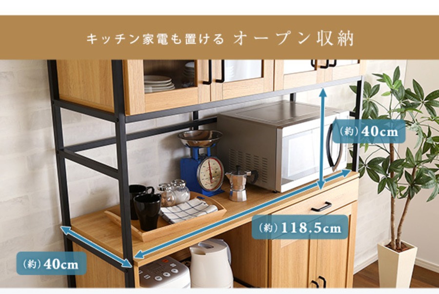 キッチン家電や食器など丸々収納できる大容量でキッチン周りもスッキリできます。