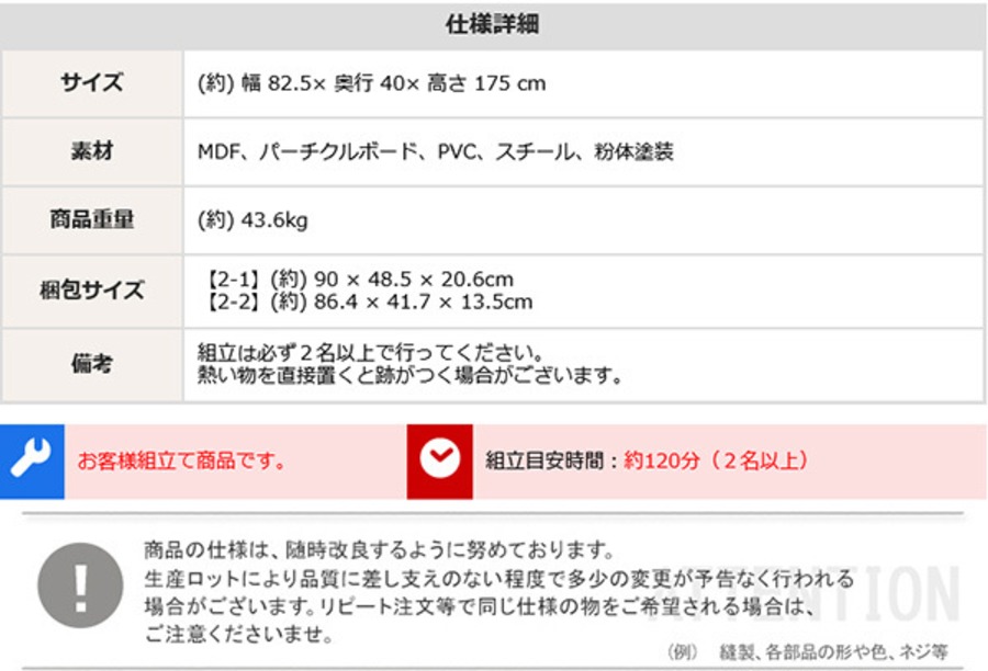 組立は必ず2名以上で行ってください。