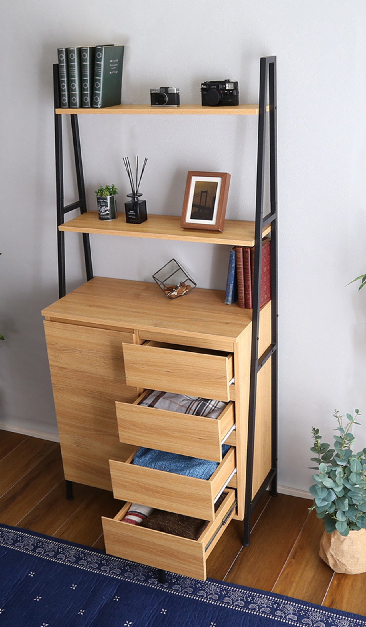 大容量の収納を確保しつつ、お気に入りのアイテムをディスプレイできます。