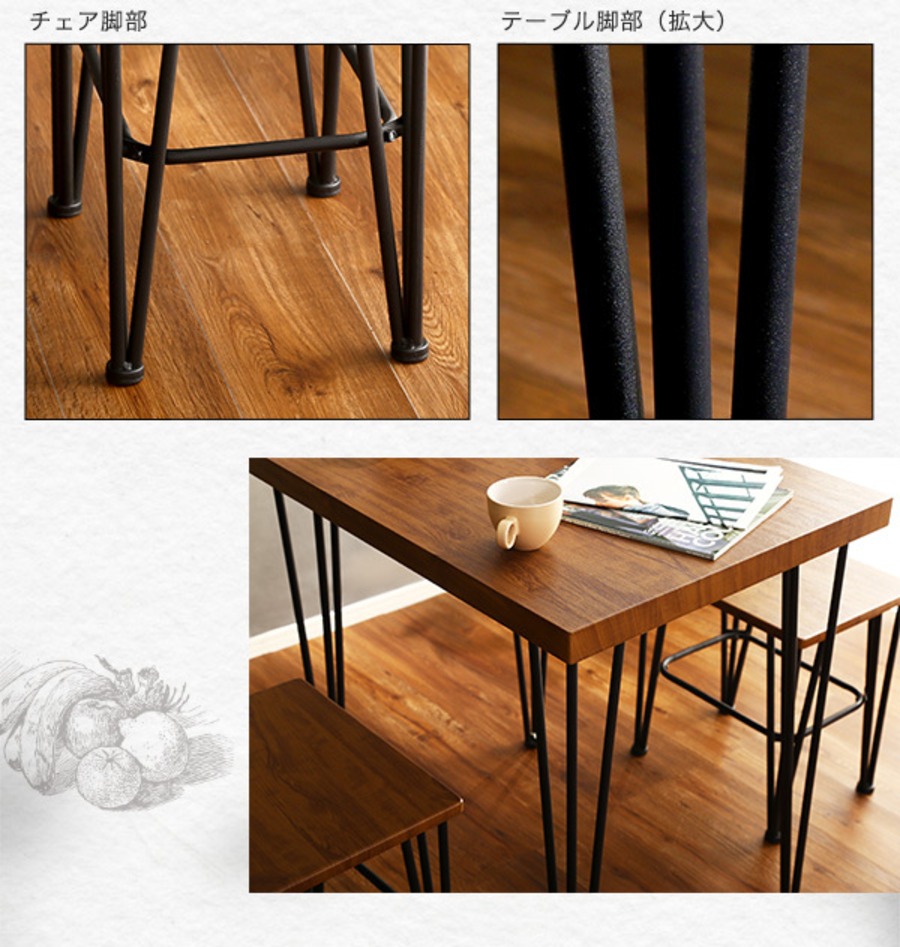 鉄脚ダイニング3点セット!