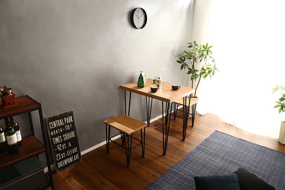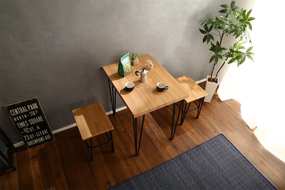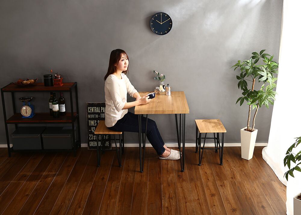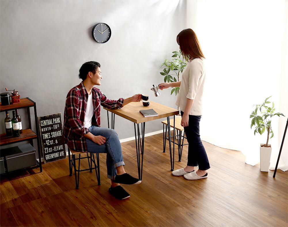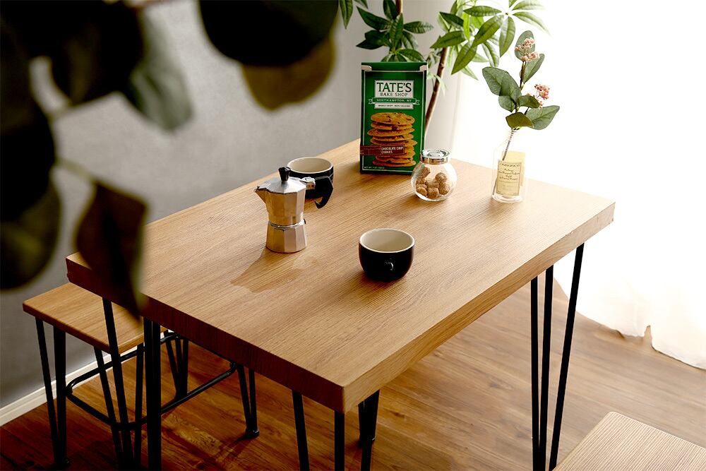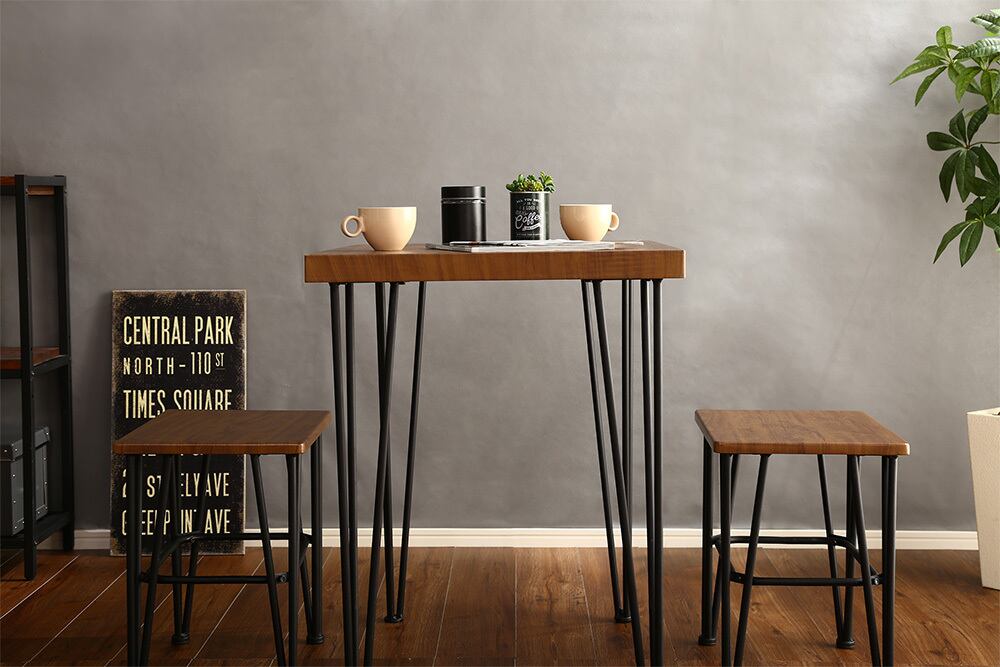 鉄脚なのでスタイリッシュに見え、テーブルひとつでお家をお洒落に!