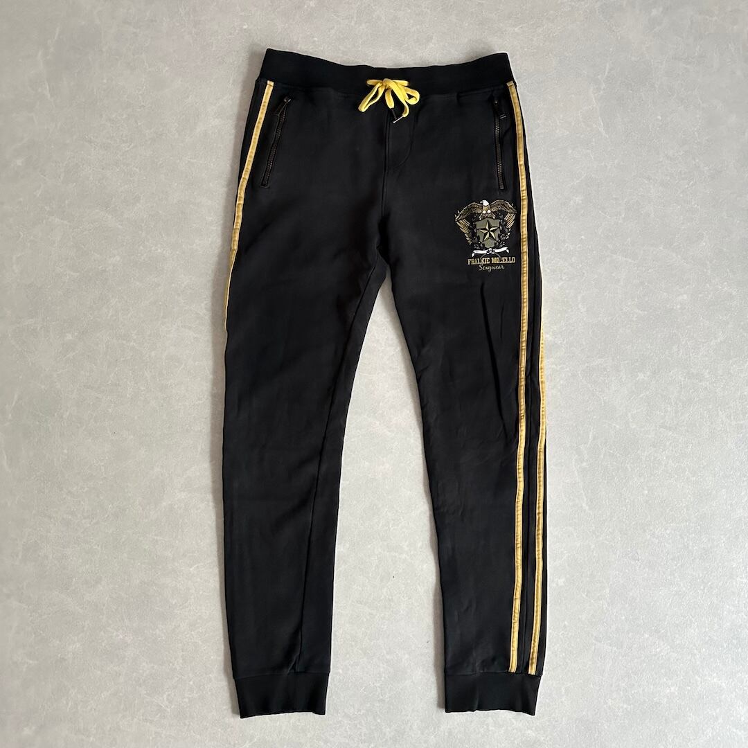 Side Line Print Sweat Jogger Pants / Black / Size M / Vintage / Men’s / Used Clothing / Sports Mix / Gold / Black / Cotton