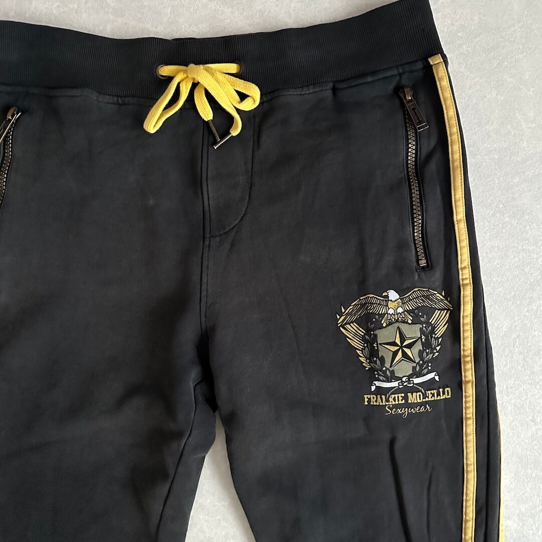 サイドライン プリント スウェットジョガーパンツ ブラック M 古着 メンズ 古着男子 スポーツミックス ゴールド 黒 金 コットン 綿