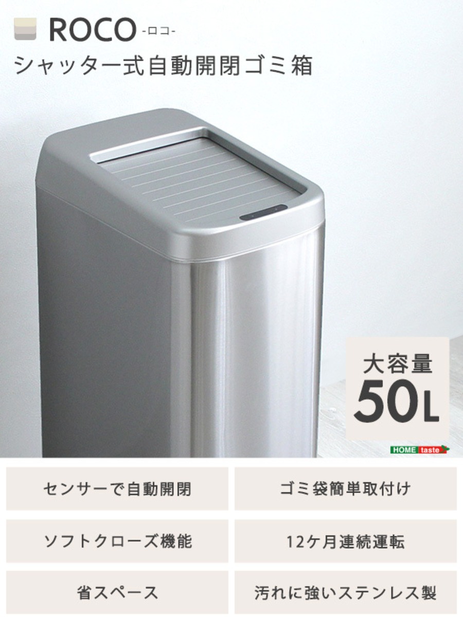 シャッター式50L自動開閉ゴミ箱【ROCO】