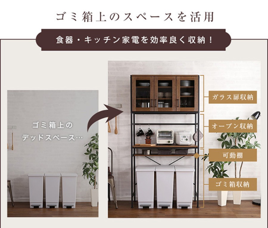 ごみ箱上のデッドスペースを有効活用することで、収納力がUP!