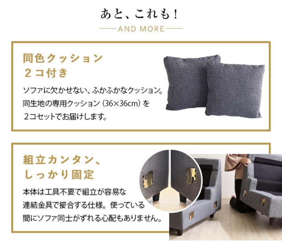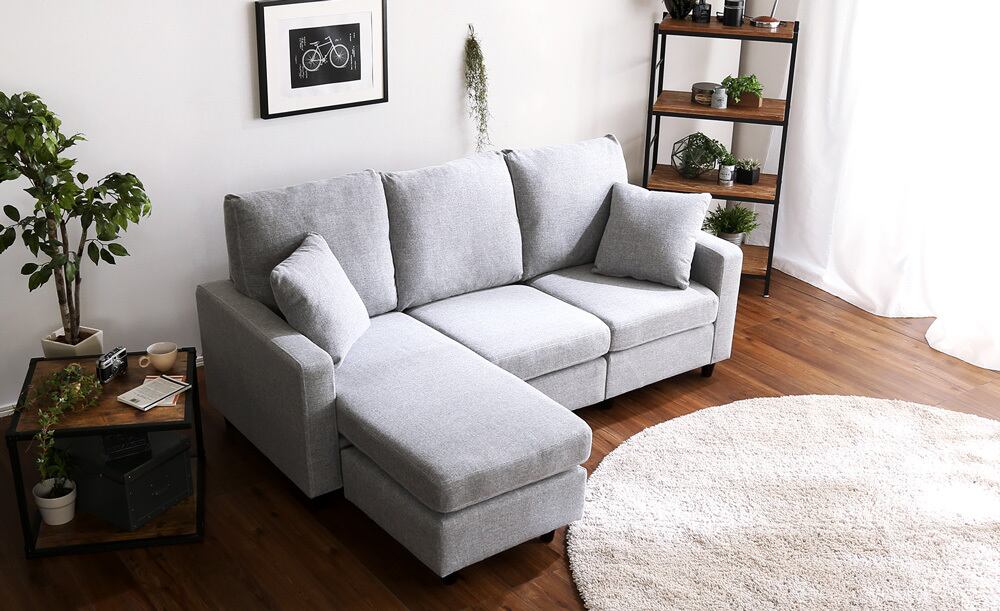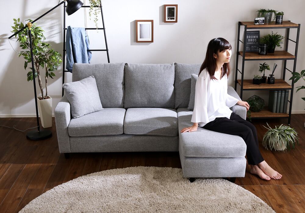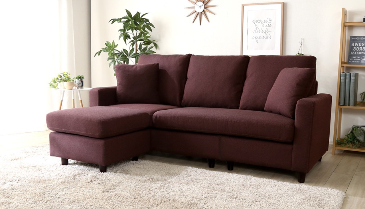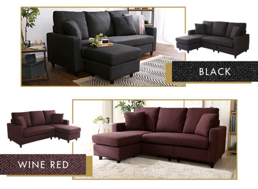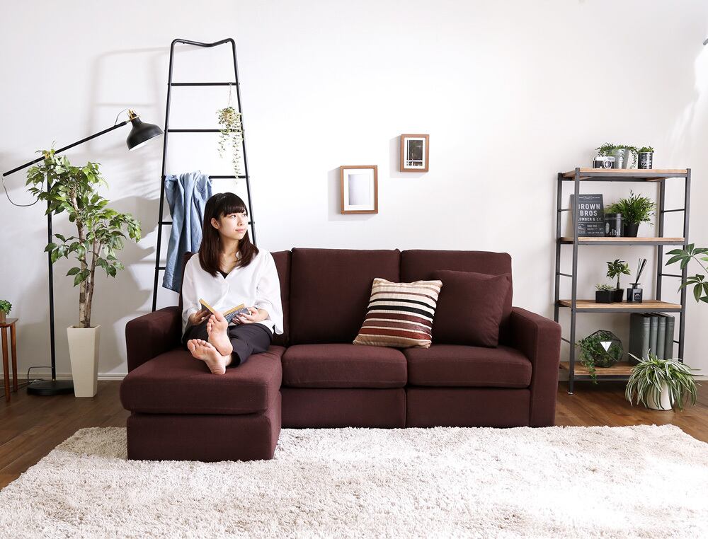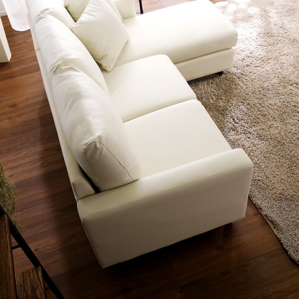 カウチにもオットマンにも、気軽にスタイルチェンジできる3人掛けソファ。 ポケットコイルとS字バネのWクッション採用で、しっかりとした弾力感のある座り心地。 PVCやファブリックなど豊富な8色展開。組み立ても簡単!