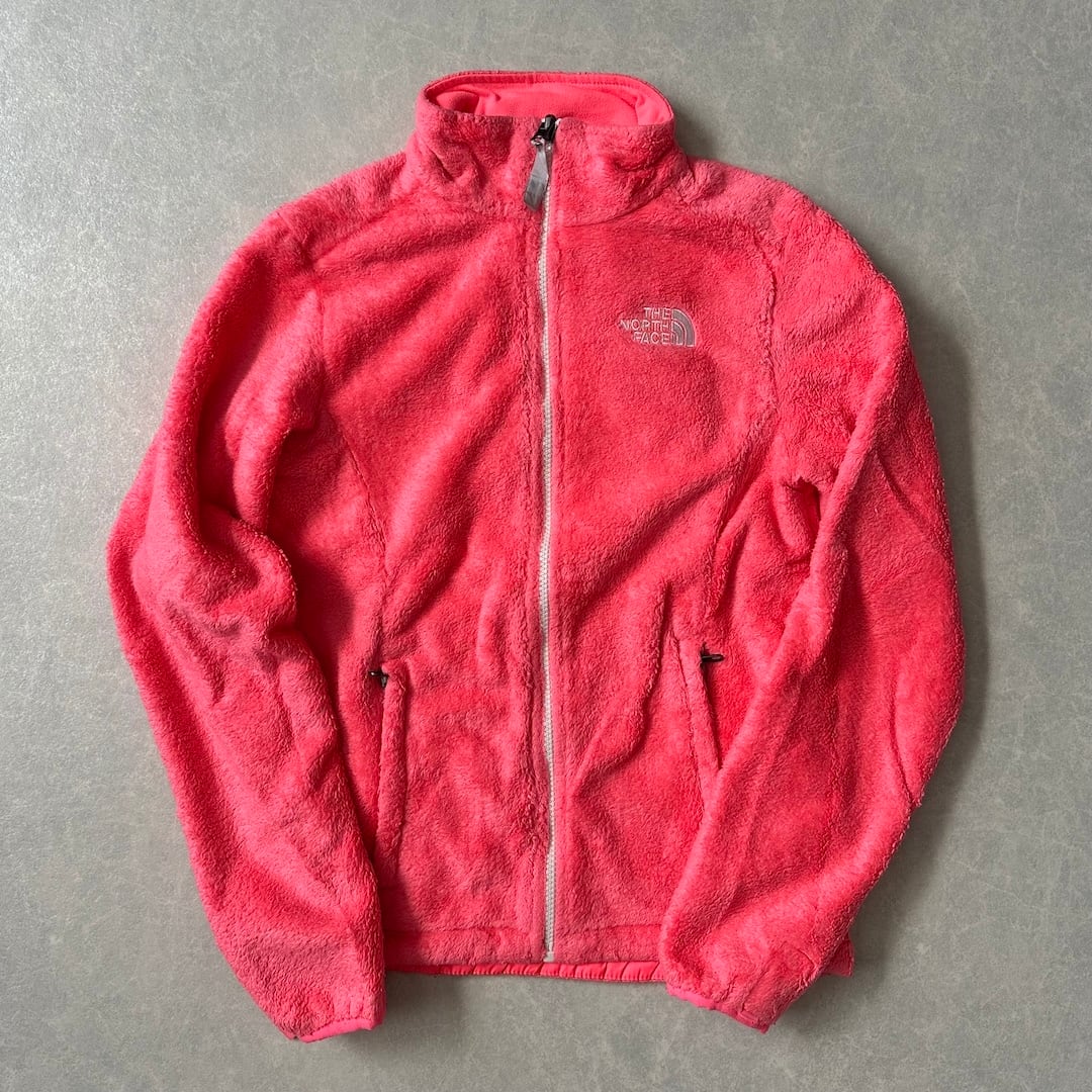 【THE NORTH FACE】ノースフェイス フリース ジップアップ ブルゾン ピンク XS 古着 レディース 古着女子 ブランド古着 アウトドア古着 キャンプ グランピング アウトドア US US古着 アメリカ アメカジ スタンドカラー ロゴ 刺繍 蛍光ピンク